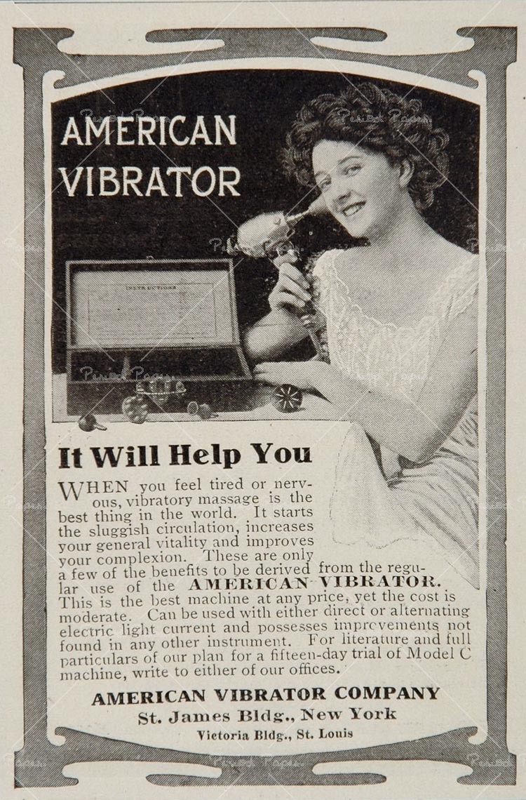 Al ser una terapia muy demandada, el potencial mercado para los vibradores era enorme, y esto fue aprovechado por la empresa Hamilton Beach que los patentó en 1902. Así, el vibrador personal fue el tercer aparato eléctrico disponible en los hogares, solamente precedido por la nevera y el ventilador, pero mucho más antiguo que la plancha eléctrica, la licuadora y la aspiradora. Las mujeres podían comprar sus aparatos por correo ya que se anunciaban normalmente en revistas de decoración y bordado.
